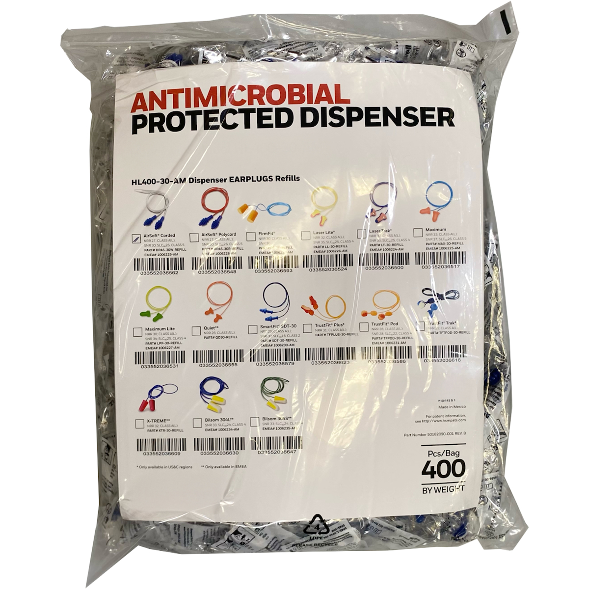 锥形可重复使用TPE有线耳塞 - 分配器补充包 - NRR 27