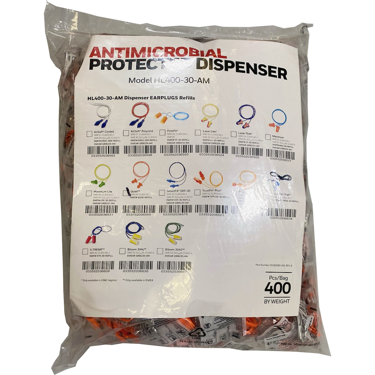 钟形可重复使用PVC有线耳塞 - 分配器补充包 - NRR 26